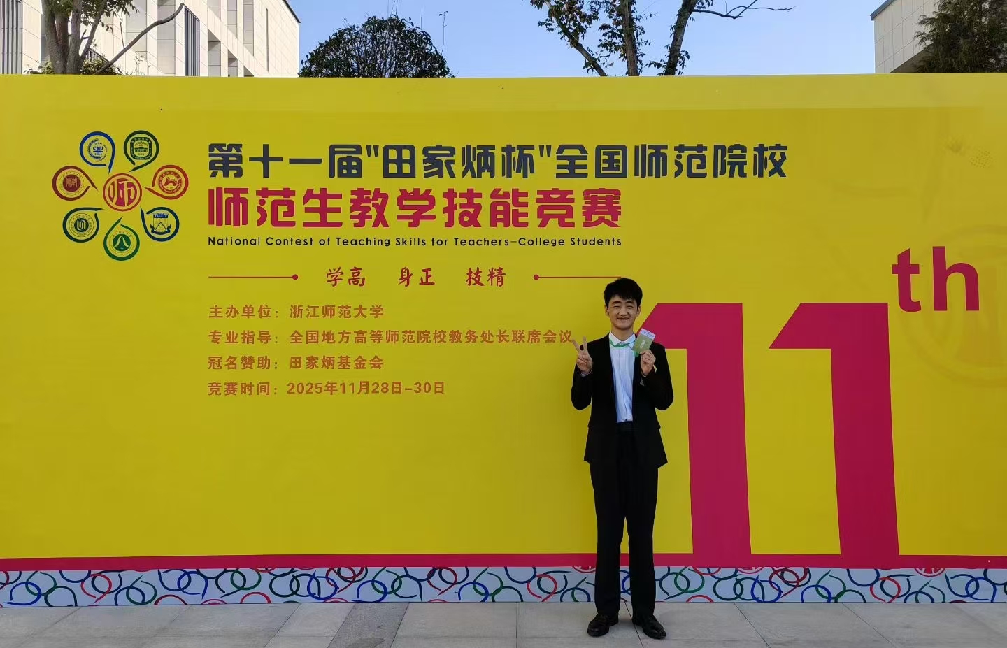 2025年11月30日晚,第十一届“田家炳杯”全国师范院校师范生教学技能竞赛在浙江师范大学落下帷幕。该项大赛作为国内师范院校师范生教学技能竞赛中层次最高,规模最大、影响最广的全国性赛事,吸引了来自全国285所院校,2345名选手报名参赛。经过网络初审,最终有178所院校的561名选手入围决赛。本次大赛参赛选手人数和参加院校的数量都达到了历史规模最大。